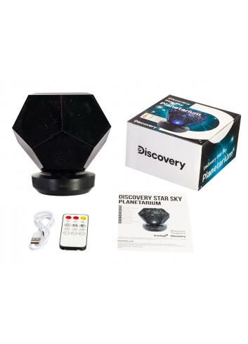 El mando a distancia permite ajustar el brillo de la proyección, seleccionar su color y conferir un movimiento rotatorio a las estrellas y constelaciones. Para obtener una imagen clara y de alto contraste, es necesario iniciar la proyección con las luces apagadas y colocar el dispositivo a 1,5–2 metros de una superficie de color claro (el techo o una pared). El astroplanetario Discovery Star Sky P7 también se puede usar como dispositivo inalámbrico gracias a su pila recargable integrada. La pila tiene una duración máxima de 12 o 6 horas, dependiendo de si se utiliza un solo LED o 3 LEDs, respectivamente. El tiempo de carga de la pila es de 3 a 4 horas; hay un indicador de carga en la base del dispositivo.