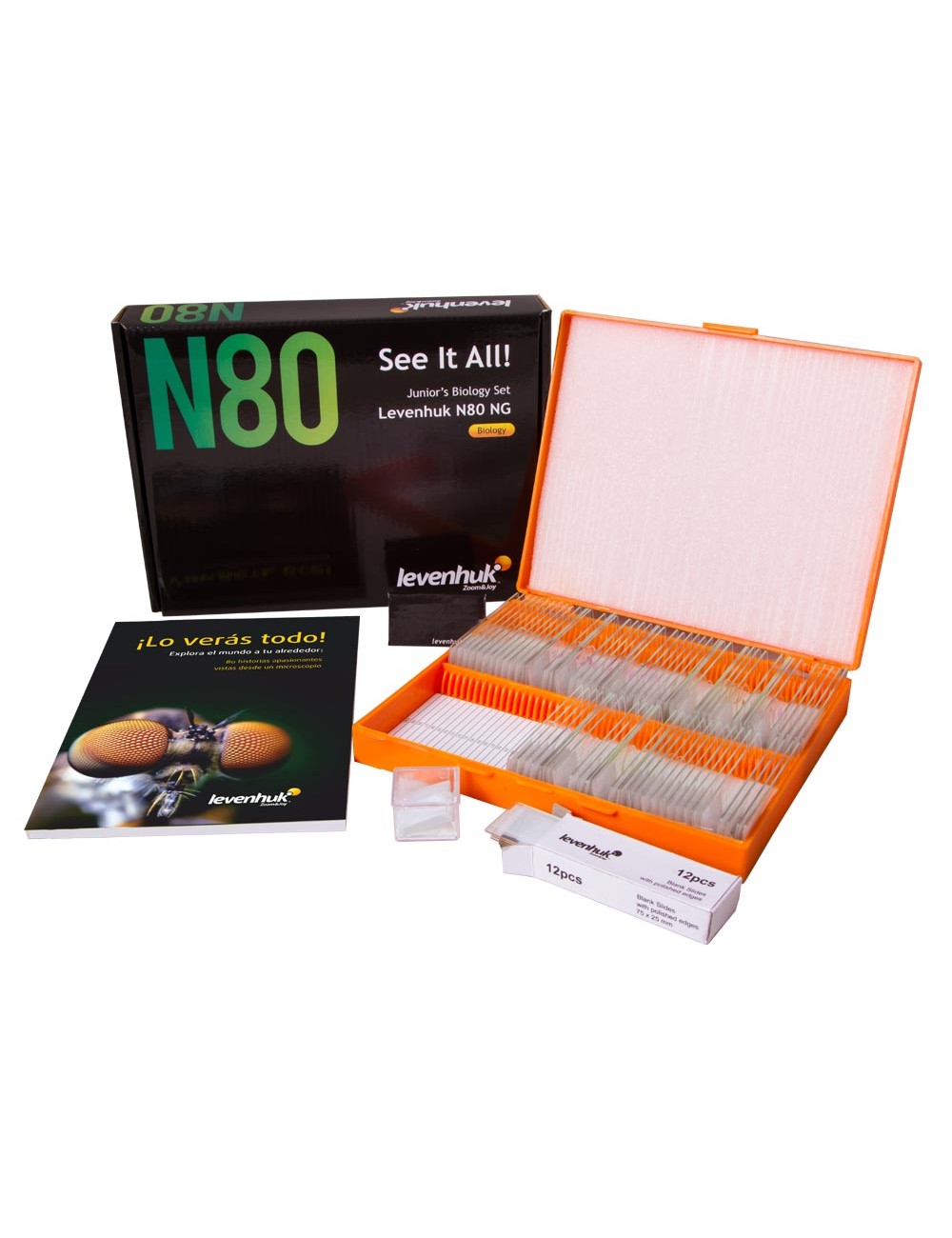 El juego de preparaciones Levenhuk N80 NG «Lo verás todo» incluye lo siguiente: