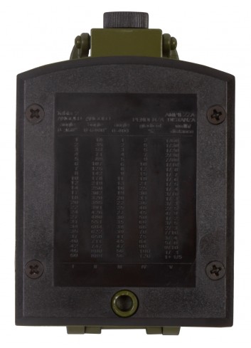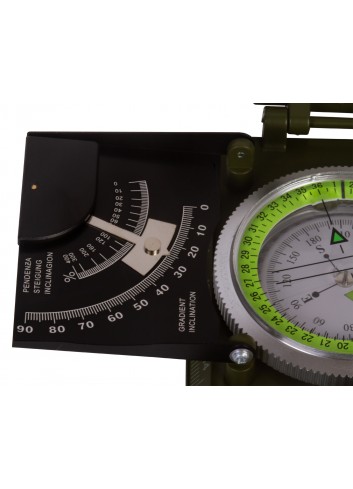 Algunos elementos del cuadrante graduado están pintados con pintura fluorescente y se disciernen bien en la oscuridad. La brújula cuenta con un clinómetro provisto de medio cuadrante; es una pequeña herramienta para determinar ángulos de inclinación. Es indispensable en trabajos geodésicos y operaciones militares. Las escalas de mapa se utilizan para planificar una ruta en un mapa: hay una escala graduada y una escala en cm.