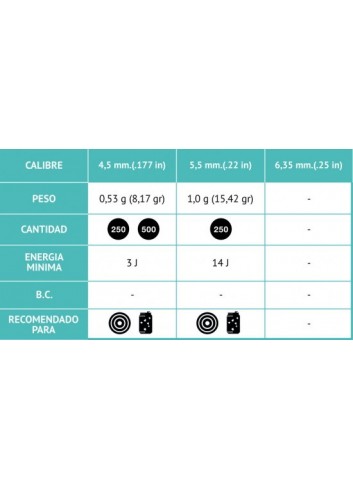 - Calibre: 4,5 mm. (.177 in)