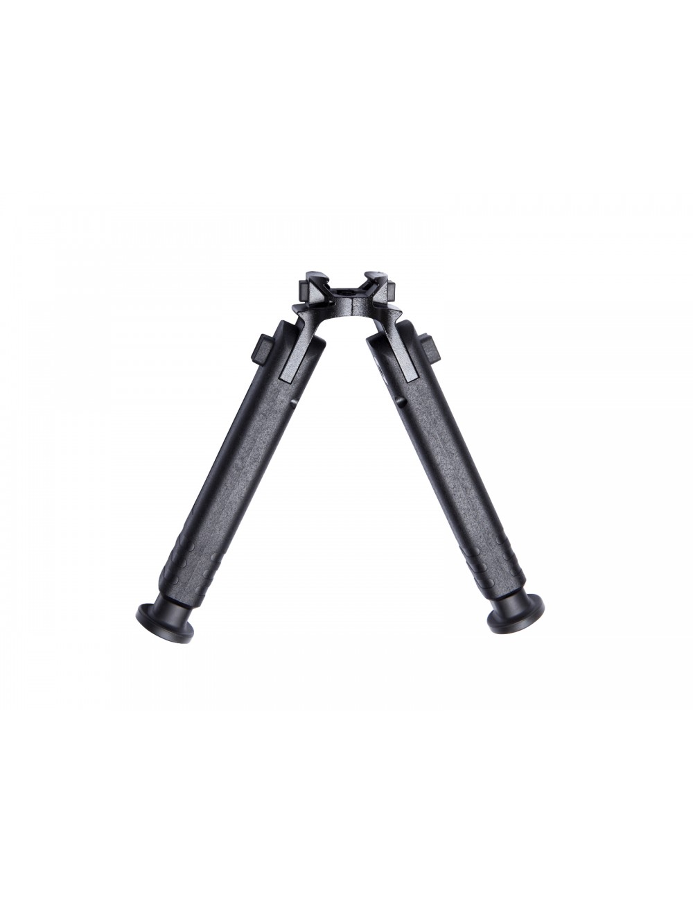Bípode universal táctico. Diseñado para adaptarse al raíl picatinny, este bípode se ajustará a todas las carabinas. Debido a la construcción de polímero de fibra muy ligera, no se agregará un peso significativo, por lo que es ideal. El bípode se conecta al raíl con un sistema de botón de extracción rápida que permite un montaje rápido o reposicionamiento. Las patas se pliegan con una simple presión sobre el botón de bloqueo y se pueden extender en 6 posiciones. El ajuste de la longitud de la pata es rápido y fácil. Las patas se pueden bloquear con un tornillo de bloqueo, ideal para francotiradores que necesitan un soporte confiable.