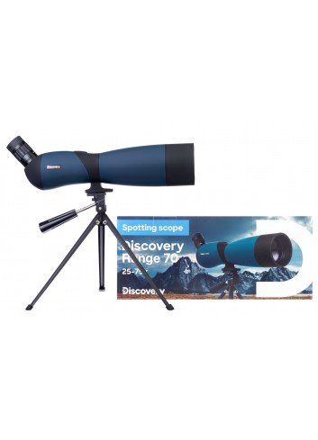 El catalejo Discovery Range 70 es un instrumento óptico con un aumento de 25 a 75x. Esto le permite pasar rápidamente de estudiar un panorama general a observar objetos muy distantes. Las prestaciones del catalejo permiten observar animales salvajes y aves desde una distancia segura, así como zonas extensas y objetivos de observación en movimiento.