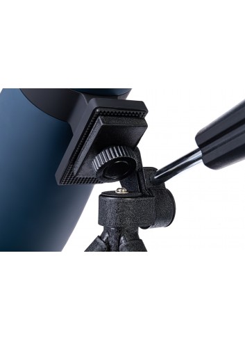 Debido al gran poder de aumento de este instrumento, se recomienda utilizar un trípode durante las observaciones. El trípode está incluido en el kit y hace que la imagen resultante sea más estable. Puede regular el trípode con un práctico mando de control. El kit incluye un pequeño trípode de mesa y un estuche de plástico para guardar y transportar el instrumento y los accesorios.