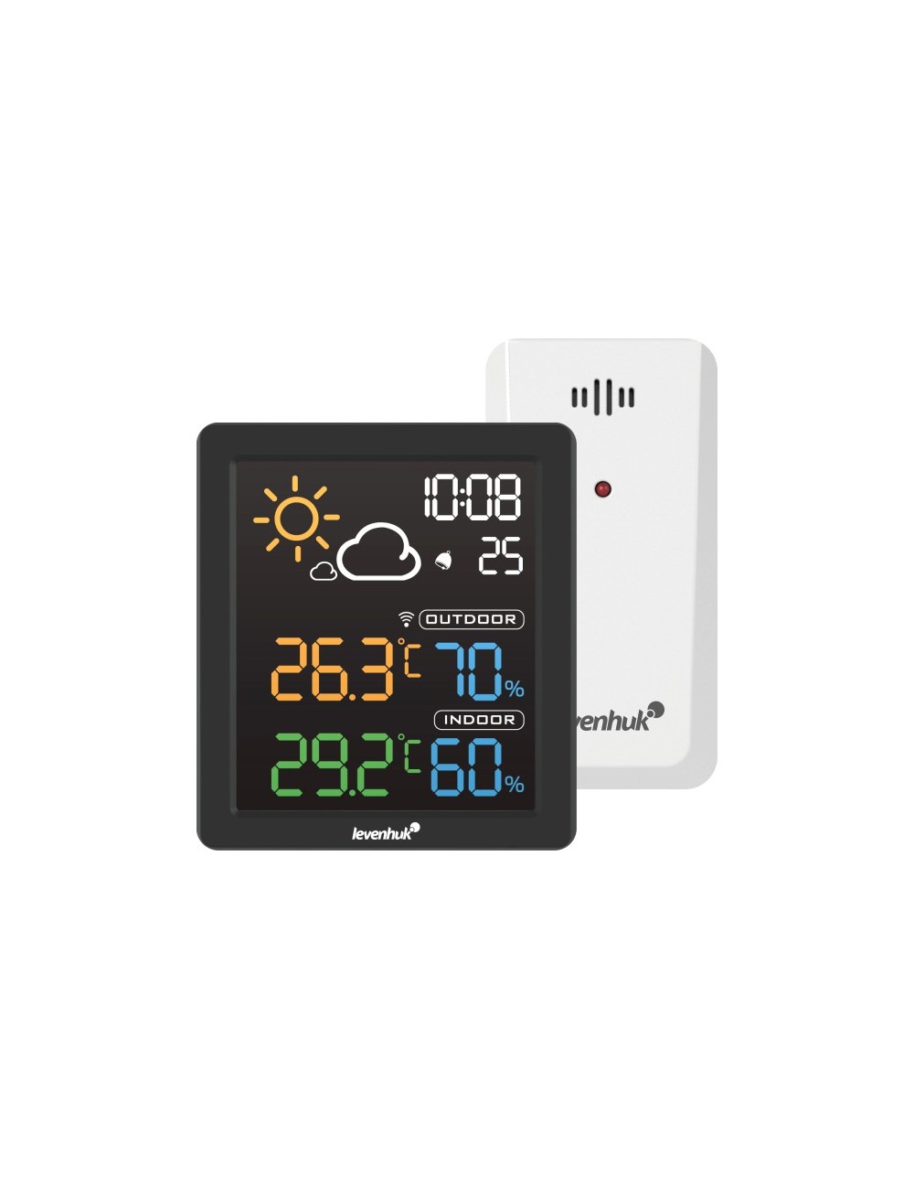 El dispositivo Levenhuk Wezzer BASE L80 es un termohigrómetro de montaje en pared con pantalla LCD de color. Gracias a su aspecto atractivo y uso polivalente, será un excelente regalo práctico. El dispositivo mide la temperatura y humedad tanto en el interior como en el exterior de la vivienda, y guarda los valores máximos y mínimos. También proporciona un pronóstico del tiempo en forma gráfica. Otra ventaja del dispositivo es el reloj con alarma. La señal de alarma se pospone durante cinco minutos con solo tocar un botón.