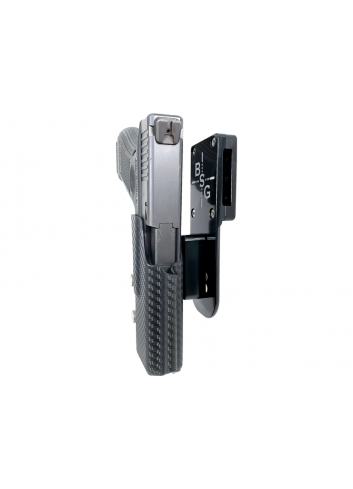 La funda profesional de competición Heavy Duty  se puede ajustar en ángulo, altura y retención siendo legal para las divisiones 3GUN, IPSC, y USPSA. La funda acepta cinturones de 1.5''a 1.75'' retirando la tapa con una llave allen.