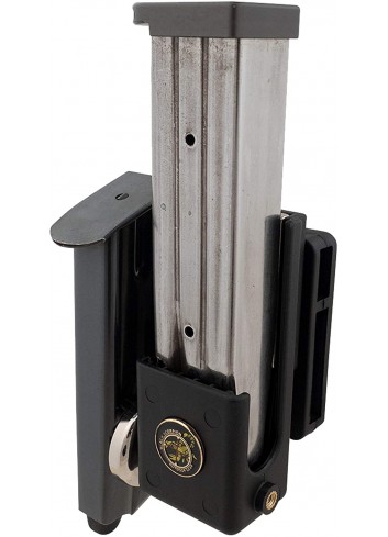 Porta cargador que contiene 2 magnetos que permite que los cargadores (single/doble hilera) puedan estar perfectamente ajustados. Usando una llave puede rotar en 360° para conseguir la posición deseada. Válido para IPSC pero no para USPSA.
