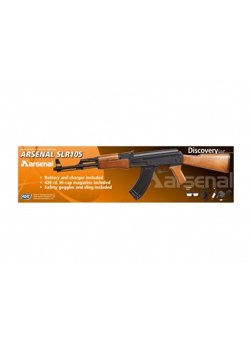 El subfusil Arsenal SLR105 DiscoveryLine 6 mm AEG cuenta con Hop-up completamente ajustable. Todo lo que necesita para comenzar está incluido, batería, cargador y un cargador de alta capacidad 420 BB, incluso un cabestrillo para ese aspecto auténtico. Hecho como una réplica a escala exacta del rifle más reconocible del mundo, con empuñadura delantera y culata hecha para parecerse a la madera, es ideal para divertirse un poco en el patio trasero. Usando 0.12 g BB, obtienes una velocidad de salida de 71 m / so 233 fps, lo que lo hace seguro para los principiantes (recuerda usar siempre gafas de seguridad).