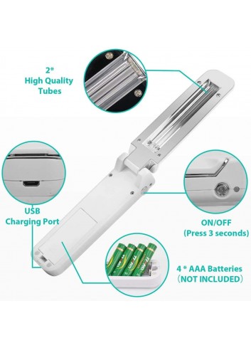 Esta lámpara portátil, científicamente probada, es capaz de eliminar el 99.9% de los gérmenes, bacterias y virus en segundos gracias a la emisión de radiación ultravioleta. La radiación UV-C es un desinfectante para el aire y para las superficies. El tubo de la lámpara, de vidrio de cuarzo, tiene una alta transmitancia que garantiza una mayor eficiencia de esterilización. Su diseño ergonómico, en plástico ligero, evita el peligro de fugas eléctricas, garantizando la seguridad y la portabilidad. Su formato de bolsillo, compacto y plegable, hace que la varita desinfectante de luz ultravioleta sea una máquina limpiadora portátil perfecta y adecuada para viajar. Su uso puede contribuir a mantener un entorno seguro reduciendo el riesgo de contraer infecciones.