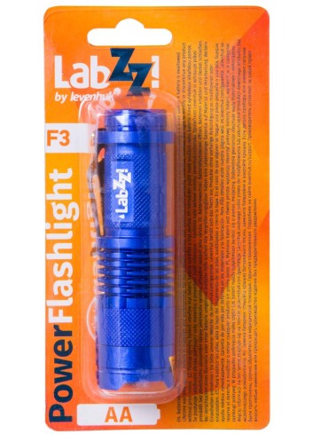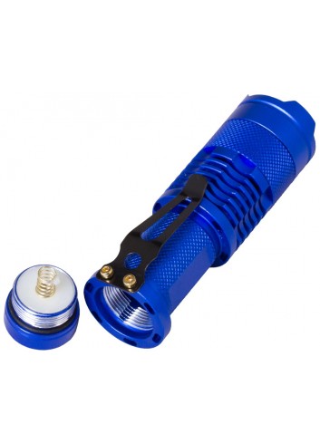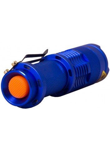 Con la linterna Levenhuk LabZZ, los niños podrán explorar cuartos oscuros o ruinas misteriosas, u orientarse en la oscuridad. Con este instrumento podrá iluminar la carretera y ubicarse en la oscuridad. Su bombilla LED de 3 W ilumina de forma uniforme e intensa. Para encenderla, simplemente apriete el botón de encendido situado en la parte superior de la montura. Su resistente montura metálica tiene una pinza que permite sujetarla al cinturón. Como alimentación eléctrica, la linterna solo necesita una pila AA (no incluida).