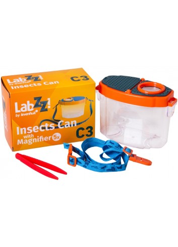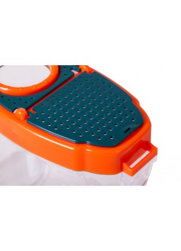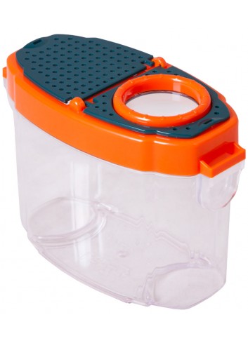 Los frascos para observar insectos Levenhuk LabZZ C3 son un instrumento de investigación para jóvenes científicos. Se trata de un recipiente transparente es de plástico, con una lupa de 5 aumentos en la tapa. En su interior pueden colocarse diferentes objetos para analizarlos aumentados con la lupa: minerales, partes de plantas u hojas de los árboles. También podrá observar insectos o una pequeña ranita, o llenar el recipiente con agua de algún estanque y explorar la vida de los peces, insectos acuáticos o renacuajos.
