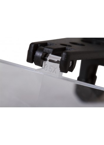 Las gafas lupa Levenhuk Zeno Vizor G0 están equipadas con lentes intercambiables; si desea aumentar más la imagen, simplemente cambie de lentes, con tres aumentos disponibles: 1,5x, 2,5x y 3,5x. Las lentes se sujetan con una pinza de fácil colocación que mantiene la lupa firmemente en la posición elegida sin dañar la montura.