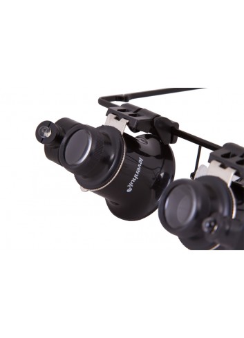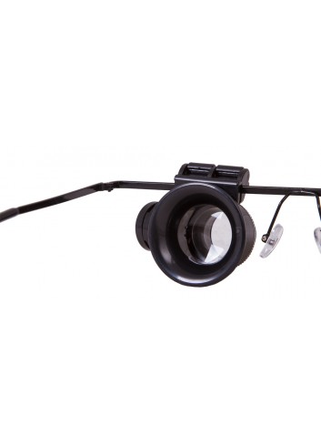 Gafas lupa Levenhuk Zeno Vizor G1, un práctico instrumento para trabajar con objetos pequeños. La lupa tiene una lente de 20x aumentos e iluminación LED integrada. La lente puede moverse de izquierda a derecha sobre la montura (respecto al ojo derecho) o apartarla totalmente. Las gafas lupa Levenhuk Zeno Vizor G1 dejan ambas manos libres para trabajar; por eso se recomiendan para aquellas personas que trabajan con elementos pequeños y que tiene que realizar operaciones de gran precisión. Resultan prácticas para fabricar o reparar relojes, para productos de electrónica, joyería, para coleccionar objetos pequeños, en medicina y en otros campos.