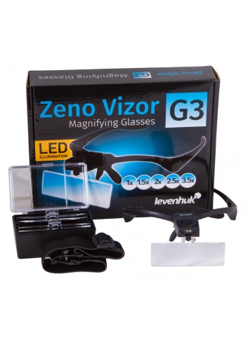 Cinco niveles de ampliación en el rango de 1x a 3,5x aumentos, iluminación LED integrada y la posibilidad de convertir fácilmente las gafas en una lupa frontal; todo esto lo obtendrá con las gafas lupa Levenhuk Zeno Vizor G3. Utilizando estas gafas podrá tener siempre las manos libres mientras realiza trabajos de precisión.
