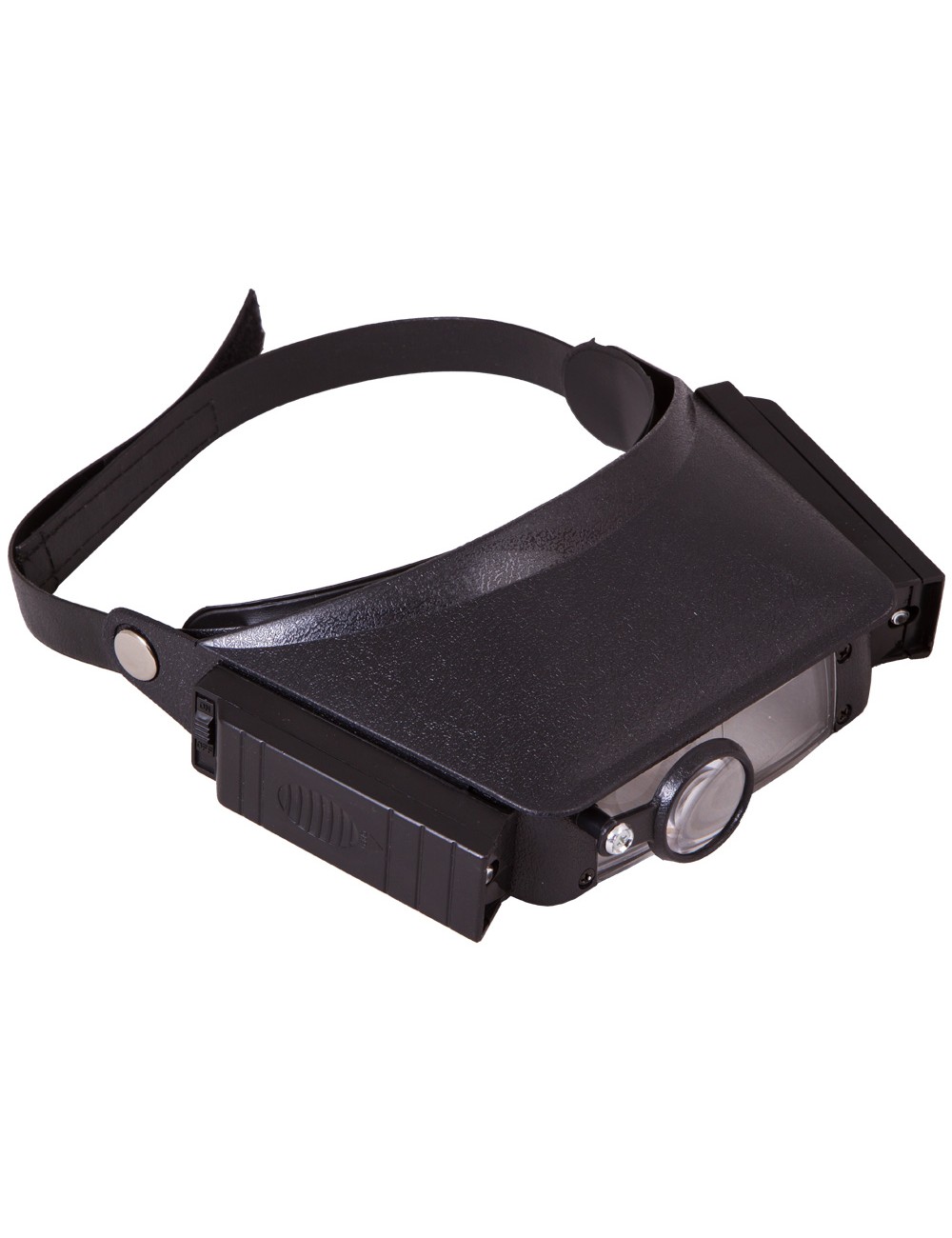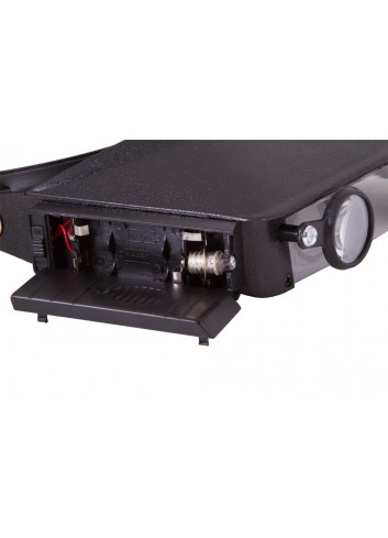 Resulta muy fácil fijar la lupa a su cabeza utilizando una cinta flexible con velcro. Tendrá las manos libres, lo que le permitirá realizar cualquier tipo de trabajo que involucre componentes de tamaño reducido. Para que resulte más práctica, la lupa está equipada con iluminación integrada (dos bombillas intensas situadas a ambos lados de la lente). La intensidad de la luz es suficiente para trabajar en total oscuridad. El sistema de iluminación funciona con pilas AAA (no incluidas).