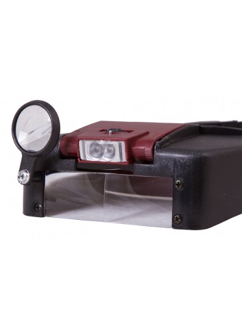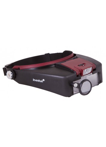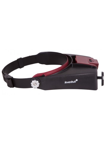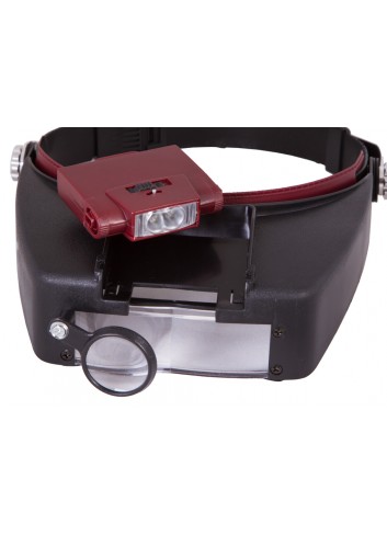 La lupa frontal Levenhuk Zeno Vizor H2 permite tener las manos libres, lo que le ayudará a la hora de trabajar con objetos pequeños. La lupa cuenta con iluminación LED y con lentes adicionales de diferentes aumentos. Se sujeta a la cabeza de forma segura con una práctica correa flexible. Tiene un rango de aumentos entre 1,5x y 8x.