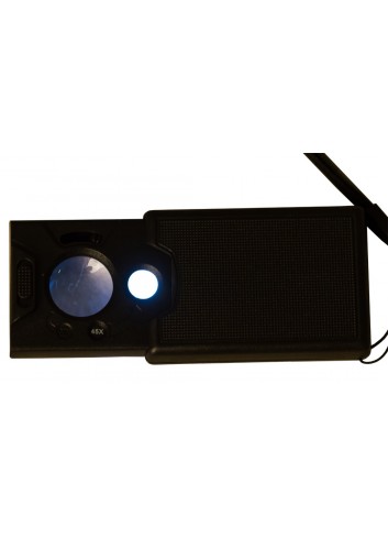 La lupa tiene dos tipos de iluminación integrada: LED y ultravioleta. La iluminación LED permite iluminar el objeto observado de forma uniforme y la luz ultravioleta ayuda a ver las marcas de agua de los billetes. Las bombillas están situadas en el borde de la montura y se encienden con un interruptor especial.