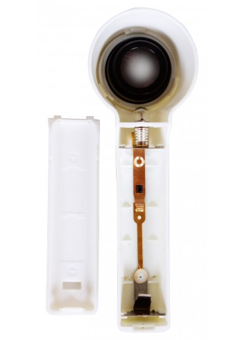 El marco y el mango de la lupa están hechos de plástico. La luz se alimenta con pilas (adquiribles por separado).