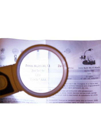 La lupa Levenhuk Zeno Multi es una lupa compacta y ligera que es ideal para el estudio de objetos pequeños y la lectura de textos de letra pequeña. La lupa lleva integradas una iluminación por LED/ultravioleta. Puede elegir la modalidad de iluminación adecuada mediante un botón de encendido/apagado situado en el cuerpo de la lupa.