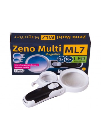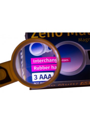 La lupa Levenhuk Zeno Multi es una lupa compacta y ligera que es ideal para el estudio de objetos pequeños y la lectura de textos de letra pequeña. La lupa lleva integradas una iluminación por LED/ultravioleta. Puede elegir la modalidad de iluminación adecuada mediante un botón de encendido/apagado situado en el cuerpo de la lupa.