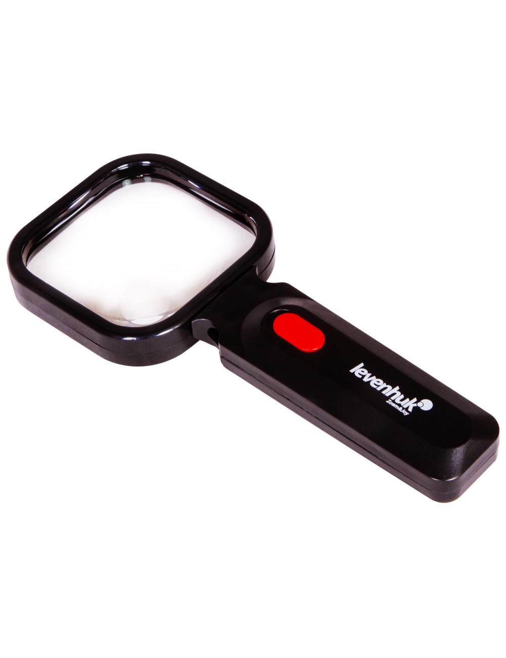 La lupa Levenhuk Zeno Multi es una lupa compacta y ligera que es ideal para el estudio de objetos pequeños y la lectura de textos de letra pequeña. La lupa lleva integradas una iluminación por LED/ultravioleta. Puede elegir la modalidad de iluminación adecuada mediante un botón de encendido/apagado situado en el cuerpo de la lupa.