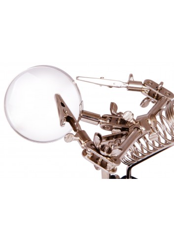 La lente está hecha de plástico óptico y proporciona una imagen clara y detallada de un objeto ampliado. Su cuerpo de metal duradero garantiza un soporte estable y una larga vida útil. Todas las lupas de esta serie tienen soportes para trabajos con manos libres que fijan objetos de forma segura.