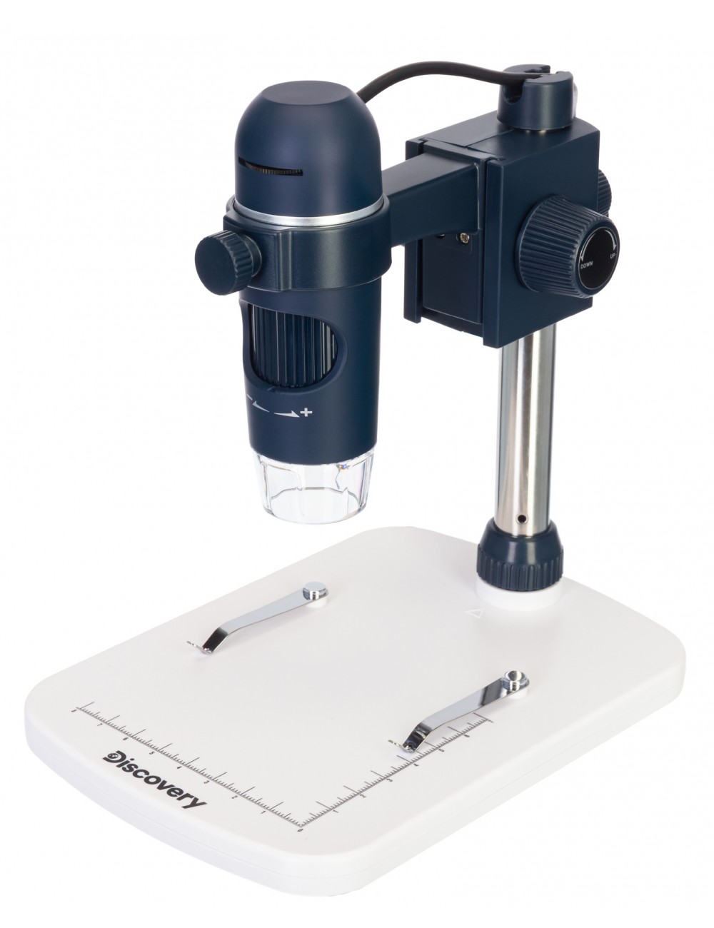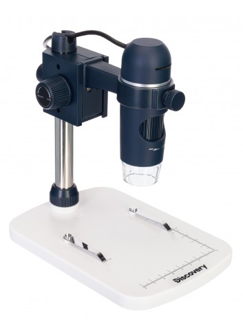 El microscopio está montado en una barra de soporte, pero se puede utilizar sin ella. La platina cuenta con dos pinzas de metal y escalas de medición. El cuerpo del microscopio está recubierto de goma. Este recubrimiento lo hace agradable al tacto, proporciona un agarre cómodo y protege el dispositivo frente a pequeños rasguños. El modelo Discovery Artisan 32 es un maravilloso microscopio digital para trabajos profesionales y uso doméstico, es fácil de usar y tiene muchas funciones útiles.