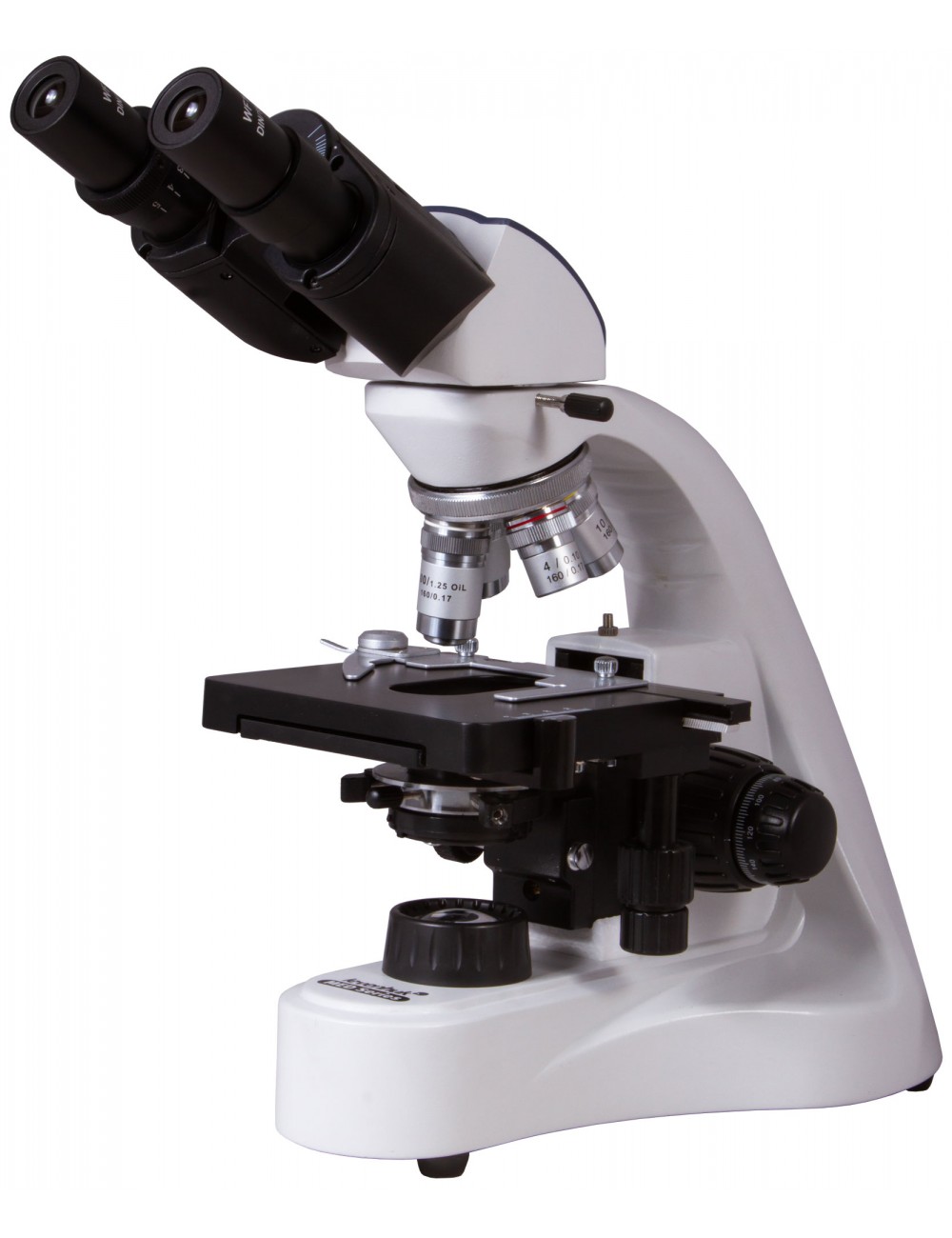El microscopio binocular Levenhuk MED 45B se ha creado para observaciones microscópicas profesionales de campo claro o campo oscuro, así como de contraste de fase. La inmersión en aceite se puede utilizar para la técnica de campo claro, mientras que para las observaciones de campo oscuro solo se usa el método «seco». El sistema óptico con corrección al infinito permite complementar el microscopio con accesorios adicionales (adquiribles por separado) para ampliar sus prestaciones. Este microscopio será un instrumento perfecto para un departamento universitario, instituto de investigación o laboratorio médico.