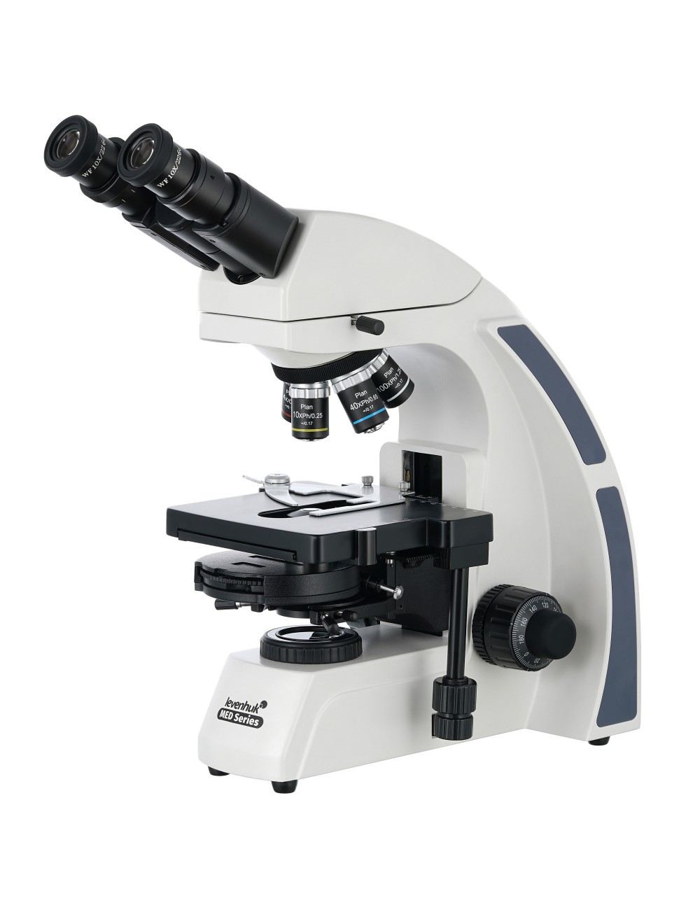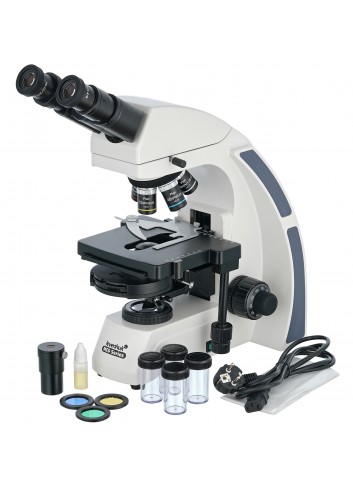 El microscopio binocular Levenhuk MED 45B se ha creado para observaciones microscópicas profesionales de campo claro o campo oscuro, así como de contraste de fase. La inmersión en aceite se puede utilizar para la técnica de campo claro, mientras que para las observaciones de campo oscuro solo se usa el método «seco». El sistema óptico con corrección al infinito permite complementar el microscopio con accesorios adicionales (adquiribles por separado) para ampliar sus prestaciones. Este microscopio será un instrumento perfecto para un departamento universitario, instituto de investigación o laboratorio médico.