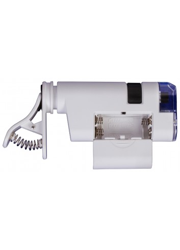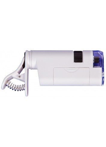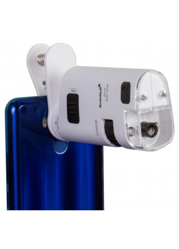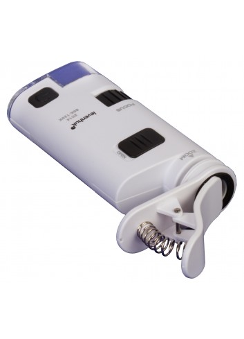 - Microscopio de bolsillo con un pinza para instalar un dispositivo móvil