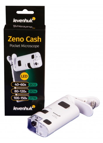 El microscopio de bolsillo Levenhuk Zeno Cash ZC14 es un instrumento de aumento con luz incorporada. Gracias a su luz, puede ser utilizado para verificar papel moneda. Este microscopio es compacto y ligero; puede llevarlo fácilmente a una reunión de negocios o en viajes largos al extranjero. Es útil en mercados o supermercados: puede verificar cualquier billete que tenga.