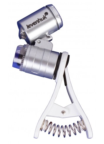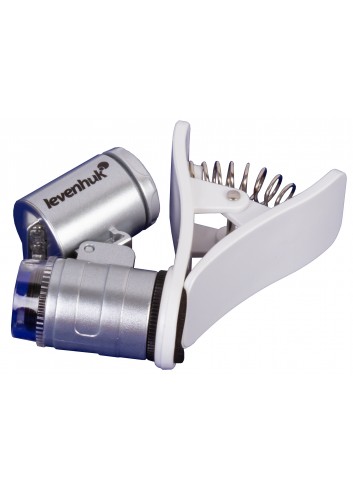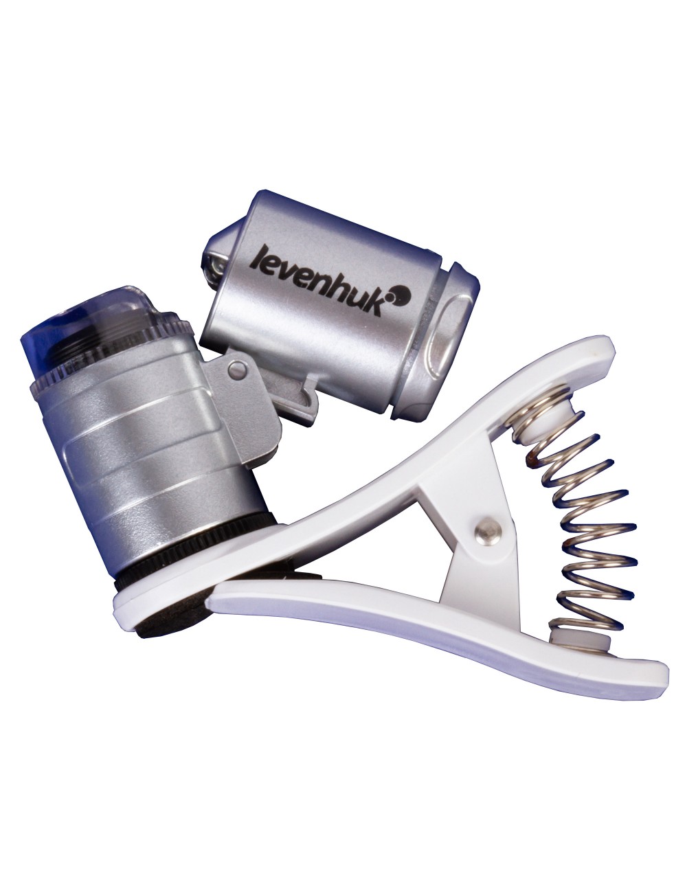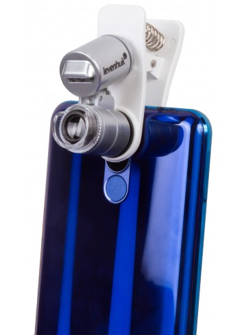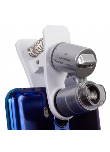 - Microscopio de bolsillo con un pinza para instalar un dispositivo móvil
