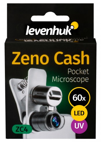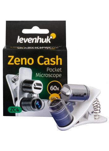 El microscopio de bolsillo Levenhuk Zeno Cash ZC4 es un instrumento de aumento con luz incorporada. Gracias a su luz, puede ser utilizado para verificar papel moneda. Este microscopio es compacto y ligero; puede llevarlo fácilmente a una reunión de negocios o en viajes largos al extranjero. Es útil en mercados o supermercados: puede verificar cualquier billete que tenga.