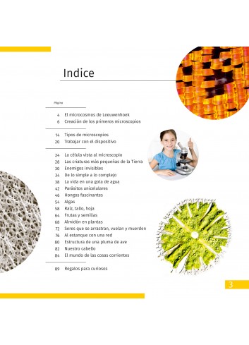 El libro educativo “”Invisible World”” (El mundo invisible) es un buen complemento del microscopio, pues está bien escrito y contiene vistosas ilustraciones. El libro contiene la historia de la microscopía, experimentos científicos que puede realizar usted mismo, una lista de los organismos más interesantes del mundo microscópico y mucho más.