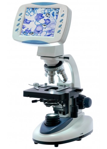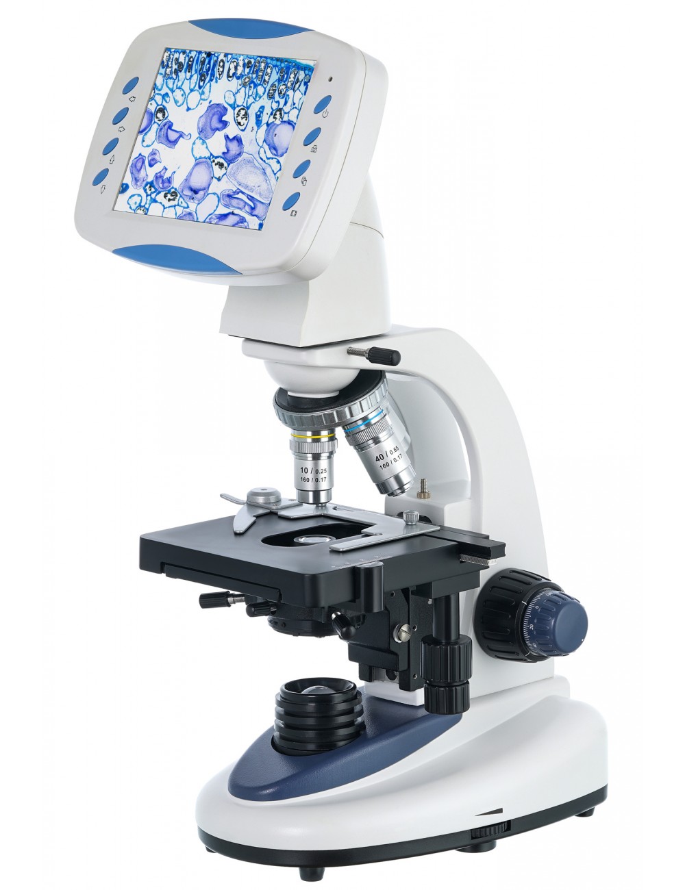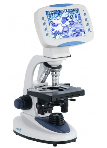 El microscopio digital LCD Levenhuk D90L es un microscopio biológico con una cámara digital de 2 MP. No tiene un tubo ocular estándar: en su lugar existe una pantalla LCD, que es mucho más práctica de usar en las observaciones prolongadas. La imagen se transmite a la pantalla desde el objetivo en tiempo real. Además, existe una opción para grabar fotos y vídeos. El microscopio es adecuado para realizar investigaciones microbiológicas, así como para crear archivos digitales de observaciones.