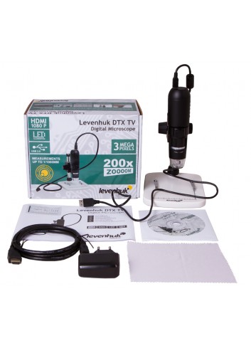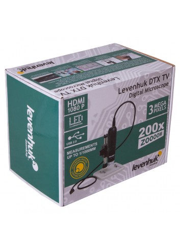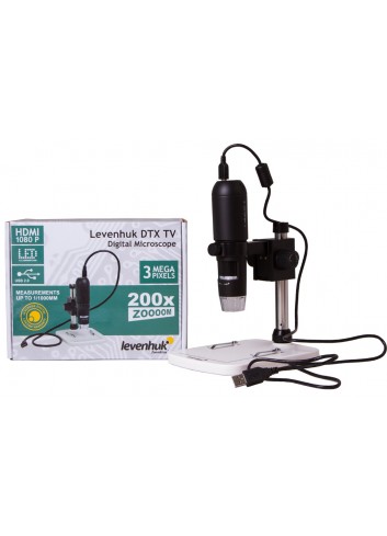 Levenhuk DTX TV es un microscopio digital que permite observar las muestras en un ordenador o en la pantalla del televisor. Se entrega con cables USB y HDMI para que usted pueda elegir la forma de conectarse que le resulte más cómoda. El microscopio transfiere las imágenes en tiempo real desde el objetivo (la lente donde se forman las imágenes) a una pantalla externa. El microscopio Levenhuk DTX TV es una elección perfecta, tanto para estudiar, como para desarrollar sus aficiones o trabajar.