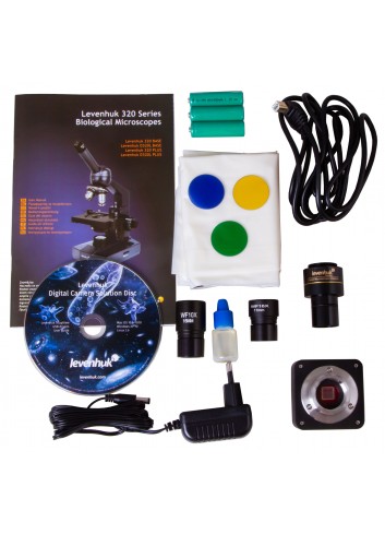 El microscopio Levenhuk D320L PLUS es compatible con las cámaras digitales Levenhuk (se venden por separado). Las cámaras Levenhuk se instalan en el tubo del ocular en lugar del mismo.