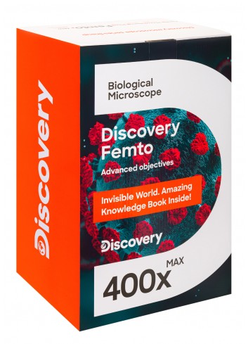 El modelo Discovery Femto Polar es un microscopio monocular clásico que permite examinar el mundo microbiano con luz transmitida y reflejada y con una ampliación de 40x–400x. Puede mostrar la estructura celular de plantas e insectos, los organismos que viven en una gota de agua, protozoos y mucho más. Este microscopio es una excelente ayuda en el aula para realizar experimentos biológicos sencillos. El kit incluye un libro educativo sobre el mundo microbiano. Este libro contribuye a que los experimentos sean todavía más interesantes y diversos.