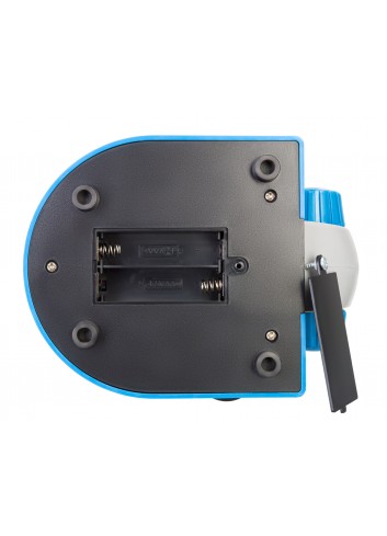 Las muestras se colocan en una platina donde se pueden fijar con dos pinzas. Hay una lámpara LED debajo de la platina. Se recomienda utilizar el sistema de iluminación si la luz ambiental es insuficiente. Gracias que la iluminación de fondo funciona con pilas (no incluidas en el kit), la iluminación se puede utilizar incluso cuando no haya una toma de corriente cercana. El brillo de la iluminación es ajustable. El flujo de iluminación también se puede corregir utilizando los discos de diafragma.