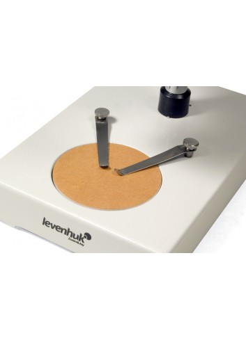 Para que las observaciones sean todavía más cómodas, la platina se puede girar de forma que quede el lado blanco o el oscuro hacia arriba y las muestras quedan sujetas con los prácticos clips que incluye.