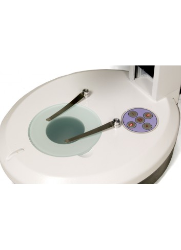 Para que las observaciones sean todavía más efectivas, la platina puede rotarse para elegir entre que el lado negro o el blanco queden hacia arriba de forma que se incremente el contraste de la muestra observada.