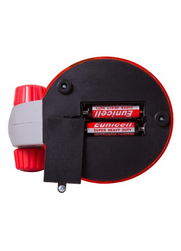 El cuerpo está fabricado con plástico resistente, muy ligero y sin embargo muy fiable. Para mayor comodidad, el cabezal se encuentra inclinado con un ángulo de 45 grados. Su diseño destaca por ser muy seguro, ya que la iluminación funciona con pilas y no con una toma eléctrica, lo que también permite utilizar el microscopio al aire libre.