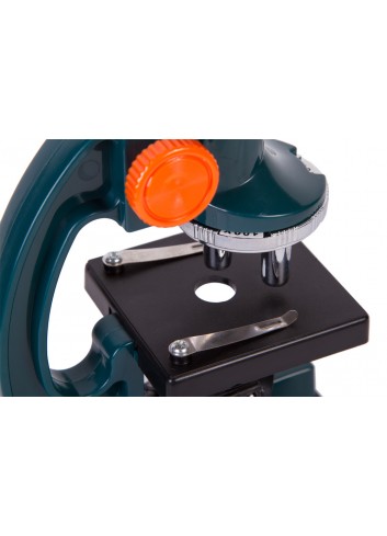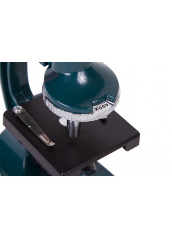 El microscopio Levenhuk LabZZ M2 cuenta con un revólver giratorio equipado con tres objetivos. Los objetivos se entregan preinstalados. Con estos objetivos se obtienen diferentes amplificaciones de valores fijos entre 100 y 900 aumentos. La iluminación está situada debajo de la platina. Podrá elegir entre un espejo o una lámpara incandescente girando la unidad de iluminación alrededor de su eje.
