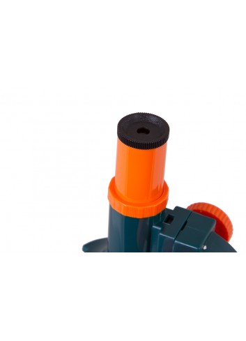 La platina está equipada con pinzas metálicas especiales para sujetar la muestra. Para enfocar se utiliza un tornillo de enfoque independiente. La iluminación funciona con pilas (no incluidas). El cuerpo del microscopio es ligero, ya que está fabricado de plástico resistente. El microscopio y todos sus accesorios se entregan en una caja vistosa y colorida.