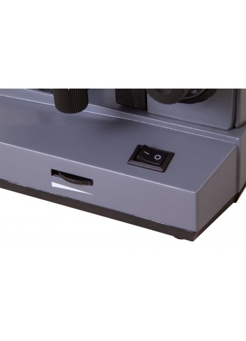 Las muestras se colocan en una platina provista de un micrómetro mecánico. Debajo de la platina hay un condensador Abbe con un diafragma iris. La iluminación halógena se encuentra debajo del condensador y se alimenta con corriente alterna. El brillo de la iluminación es ajustable. Puede instalar filtros de luz.