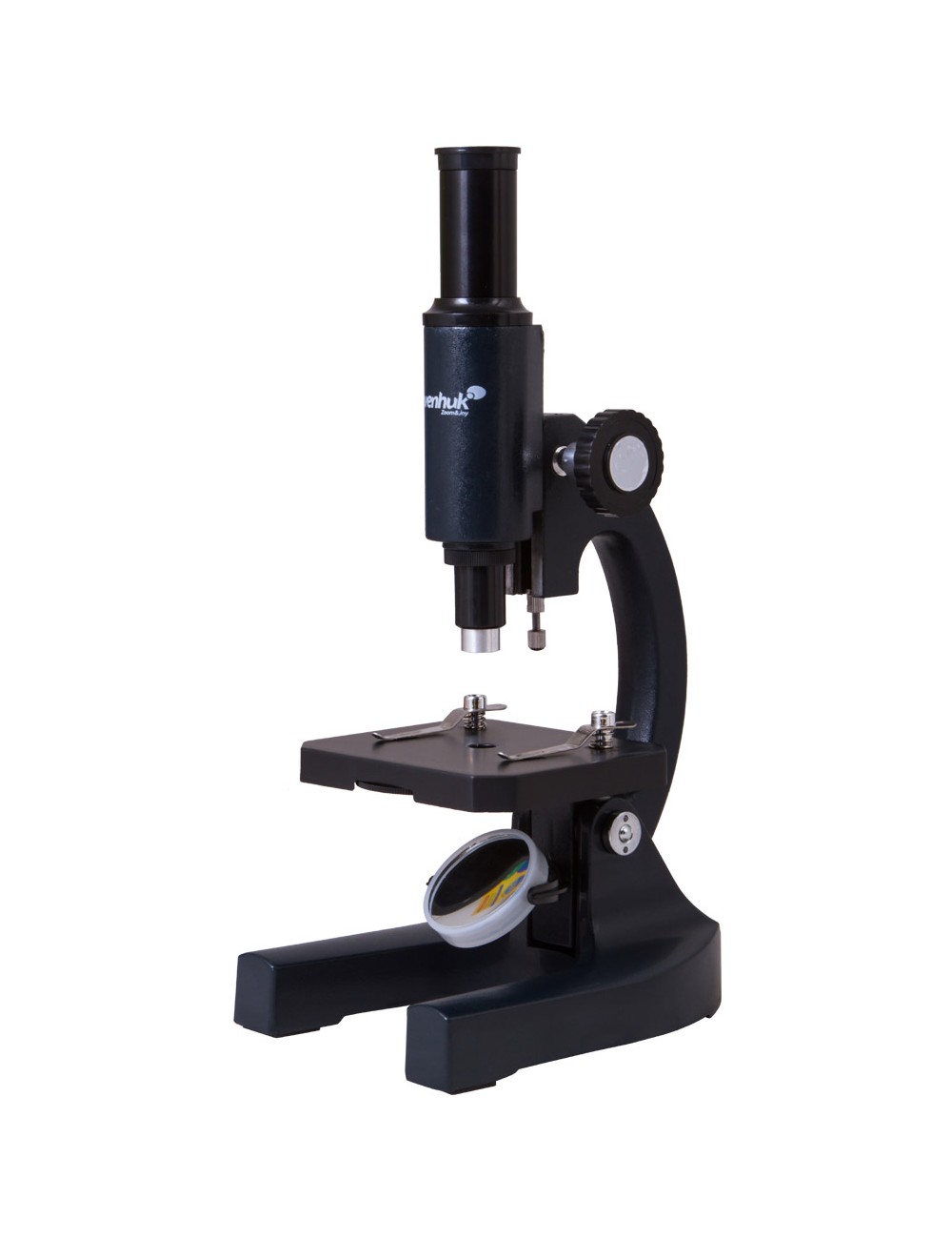 El Levenhuk 2S NG permite realizar observaciones de campo claro de especímenes transparentes. Su espejo plano cóncavo de 40-mm ofrece suficiente luz para las observaciones, por lo que este microscopio se puede usar sin necesidad de conectarlo a una fuente de alimentación. Este es el sistema de iluminación más sencillo y seguro, por lo que los niños pueden usar con seguridad este microscopio didáctico. El diafragma de disco permite controlar la luz necesaria para el estudio del especimen.