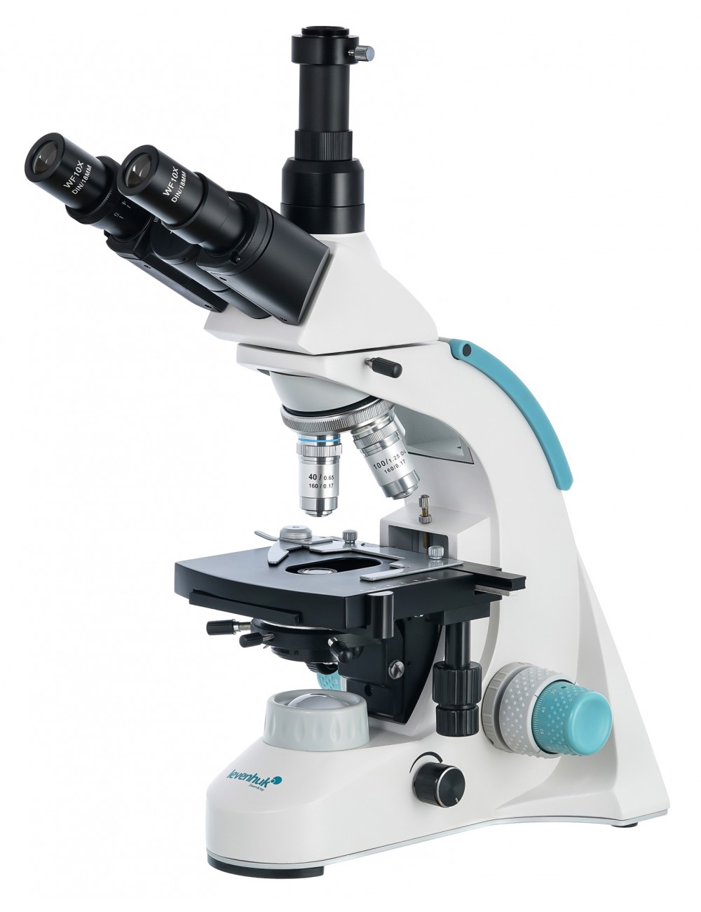El modelo Levenhuk 900T es un microscopio trinocular que permite instalar una cámara digital. El microscopio da unos excelentes resultados en los trabajos de investigación de laboratorio y se puede utilizar con fines educativos. Las observaciones se realizan sobre campo claro con luz incidente. También se puede utilizar el método de inmersión en aceite. El microscopio se puede utilizar en investigación clínica general, trabajos de histología, citología, bacteriología y otros campos de investigación microbiológica.