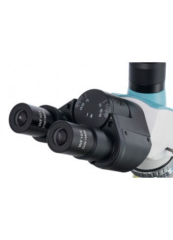El cabezal consta de un componente visual inclinado y un tubo vertical para instalar una cámara digital (no incluida en el kit). El cabezal se puede girar 360°. El kit incluye dos oculares de campo amplio y cuatro objetivos acromáticos con varios niveles de aumento. La nitidez de la óptica se ajusta utilizando mandos de enfoque aproximado y enfoque preciso ubicados en la base del microscopio. Este microscopio está diseñado para hacer observaciones de campo claro. Se puede usar el objetivo de 100x para observaciones utilizando el método de inmersión en aceite. Para proteger la lente frontal, los objetivos de 40x y 100x tienen un mecanismo de retracción por muelle.