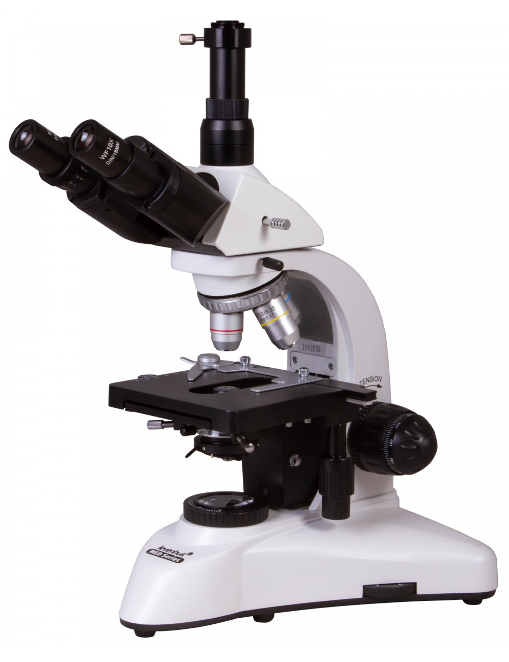 El microscopio trinocular Levenhuk MED 20T es compatible con las cámaras Levenhuk (adquiribles por separado). Las cámaras Levenhuk se instalan en el tubo del ocular, en el lugar que ocuparía el ocular.