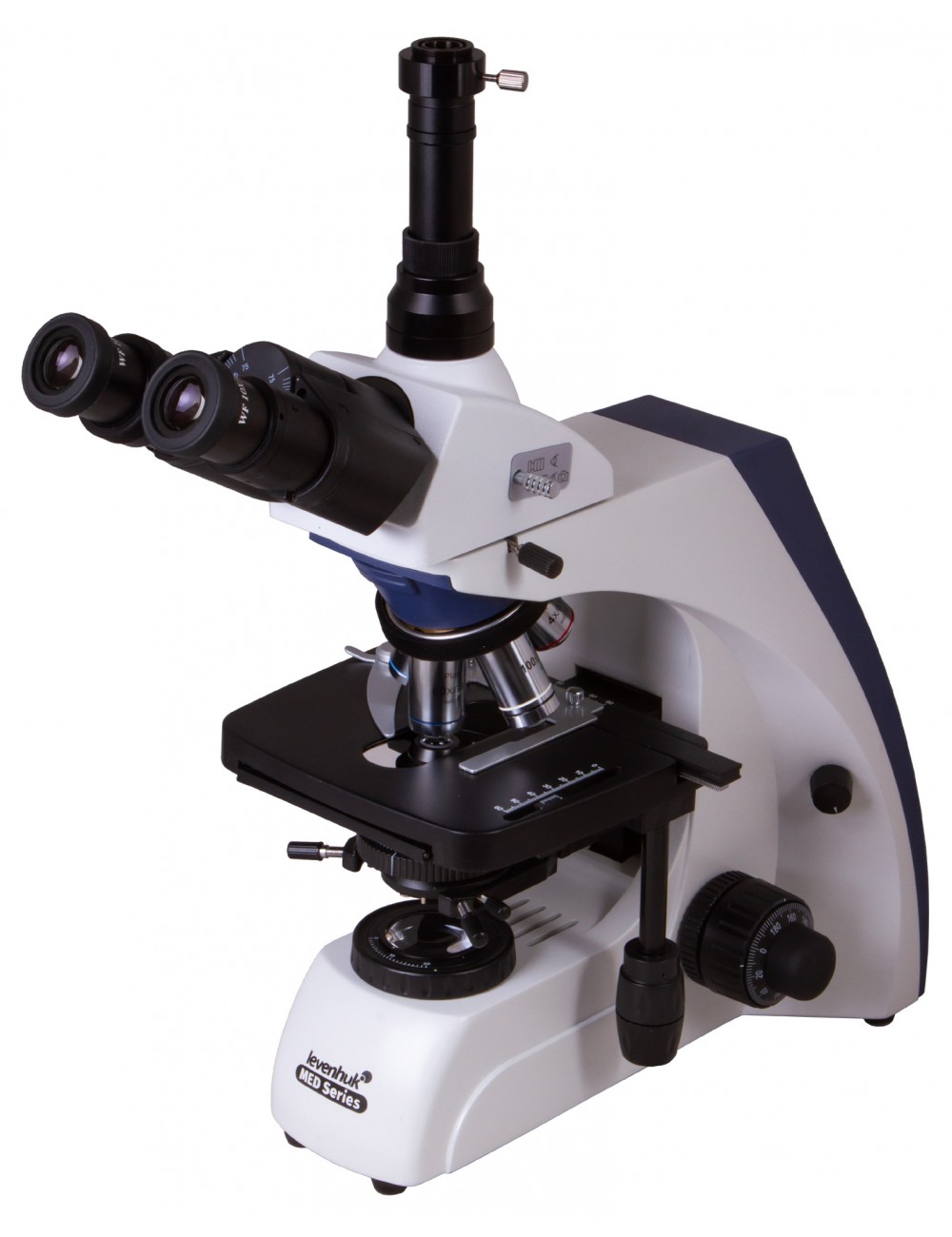 El microscopio binocular Levenhuk MED 35T es compatible con las cámaras digitales Levenhuk (adquiribles por separado). La cámara Levenhuk se instala en el tubo del ocular, en sustitución del ocular.
