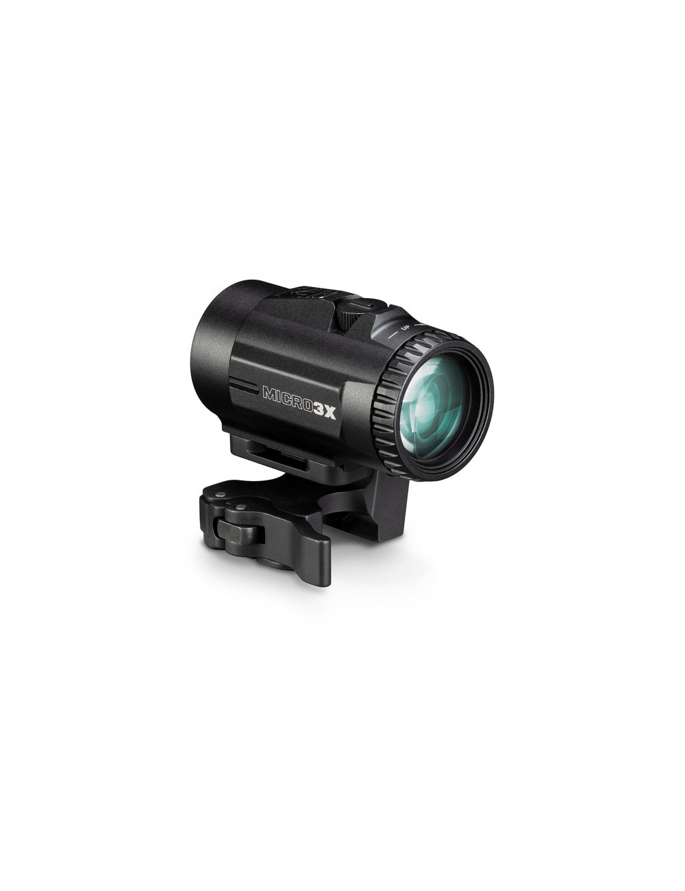 La versatilidad del aumento 3X es el siguiente nivel para su punto rojo o visor holográfico, en un diseño ultracompacto, liviano y ópticamente nítido. El sistema integrado de liberación rápida permite conectar/desconectar rápidamente el magnificador mientras que su leva activa/desactiva la lupa con presión directa. Su soporte abatible y ajustable permite su uso con la mano derecha o con la mano izquierda.